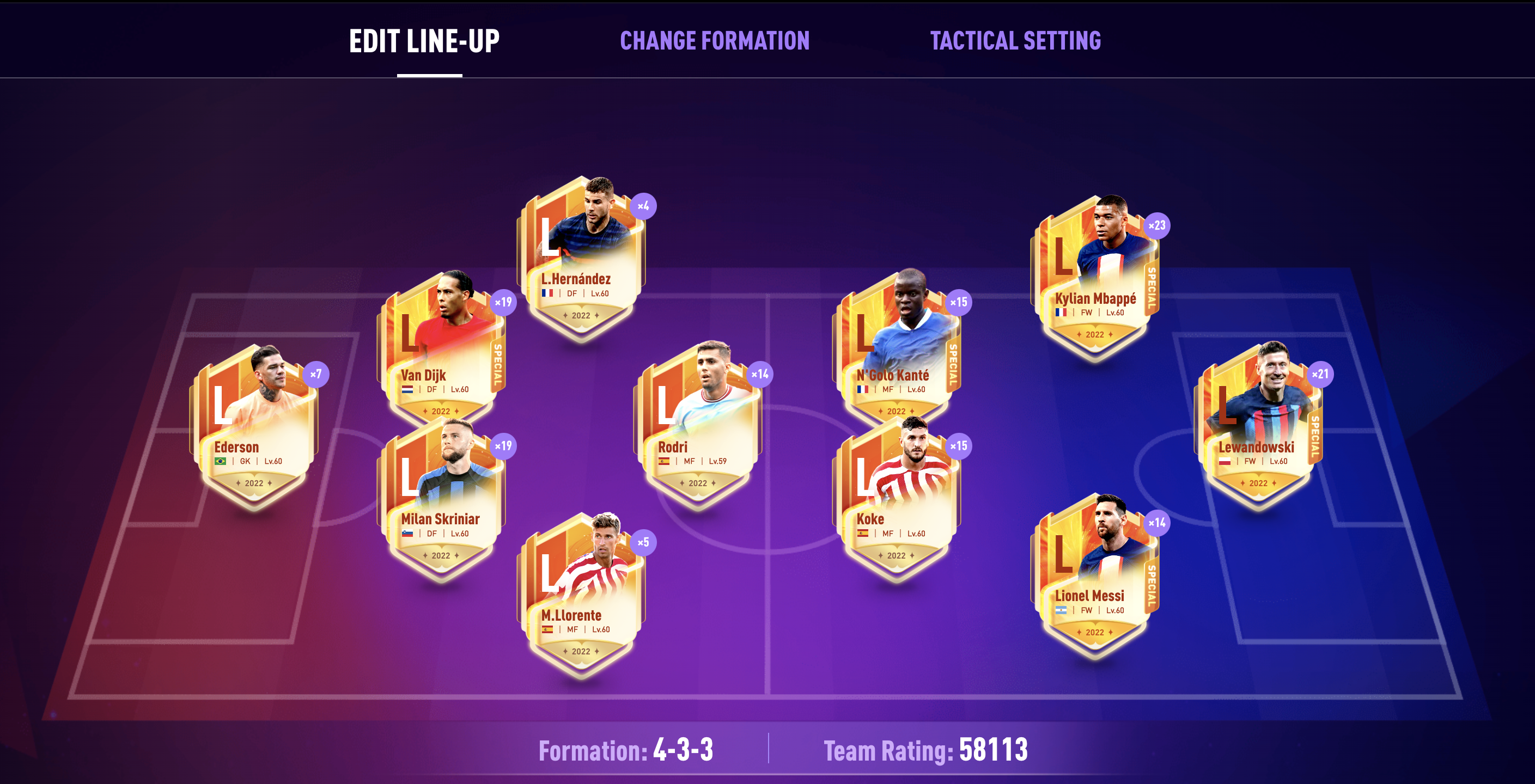 You can adjust the player positions through "Edit Line-Up" on the "Game" page. After clicking on the avatar of the corresponding position, you will see all the player cards you have for that position, and learn about the skills of each player, and his physical state. Choose the players who are most suitable for the battle and build your strongest team!