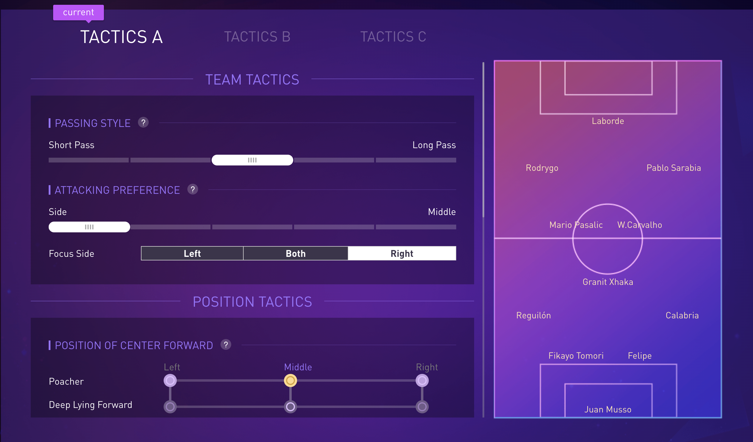 After deciding formation, line-up and players, you can also adjust tactical settings to maximize the tactics and player characteristics. In tactical settings, you can decide passing style, attacking tendency, main attacking direction and specific characteristics of the players at each position. Responsibility and details determine success; observing the opponent's weaknesses and making targeted deployments can get you one step closer to victory.