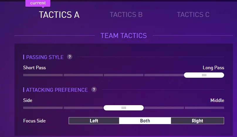 use the long pass method to accurately pass the ball to the target area or your own players. This tactic is recommended to choose long pass in the passing style. This tactic is suitable for 4–4–2 or other balanced formations which are good at utilizing space such as 4–4–1–1.